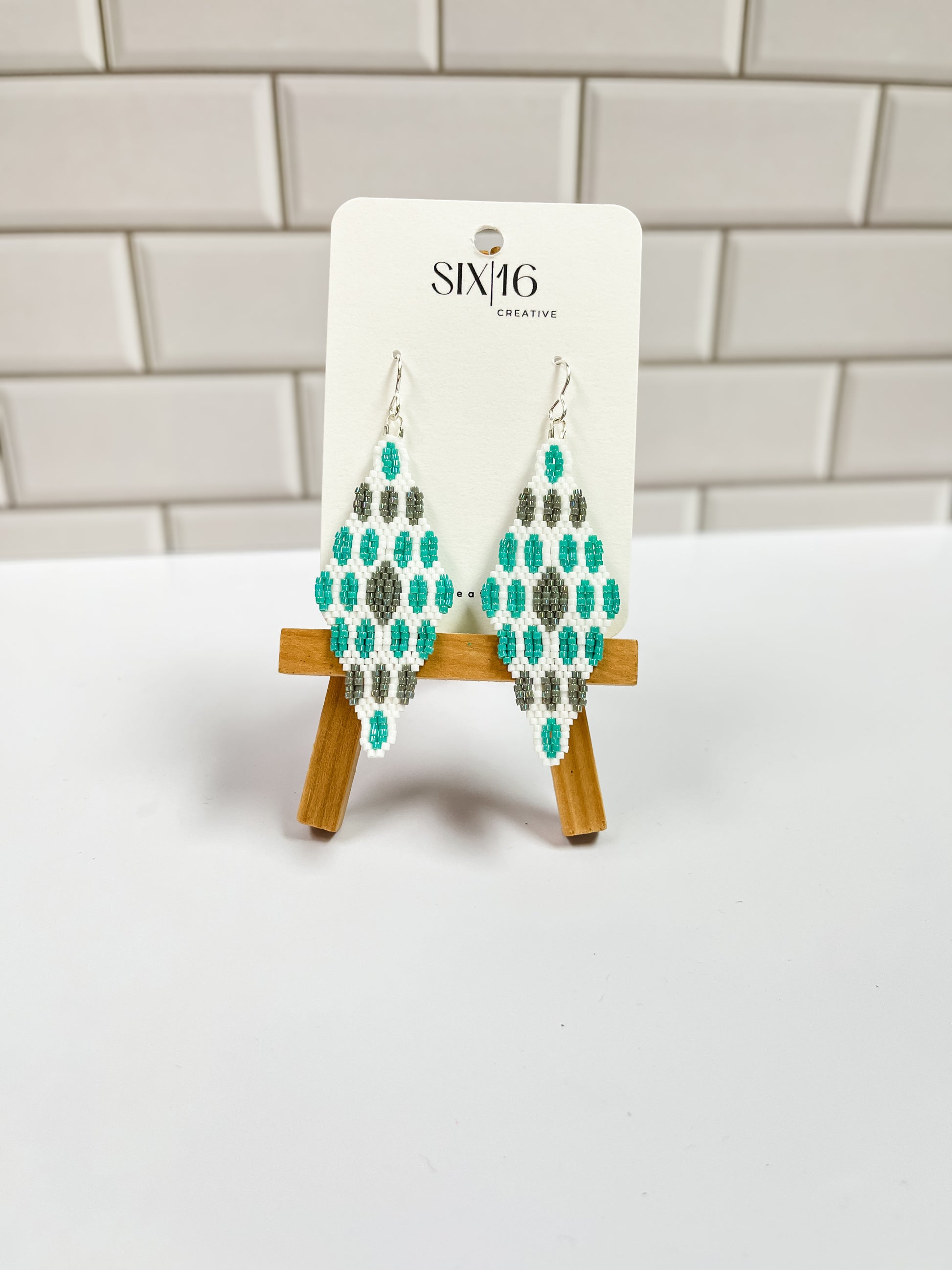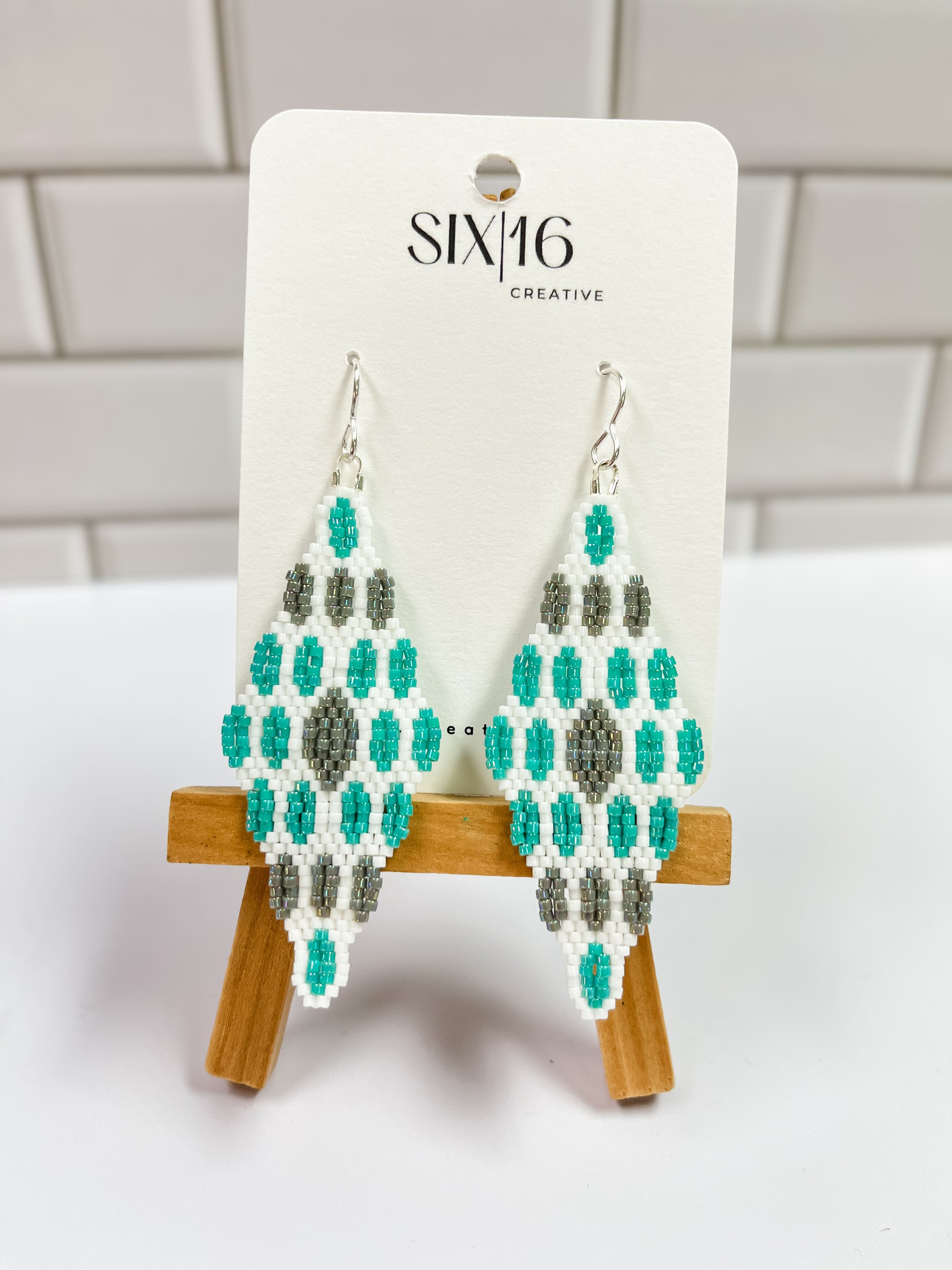 Aqua and Grey Scalloped Diamond Beaded Earrings