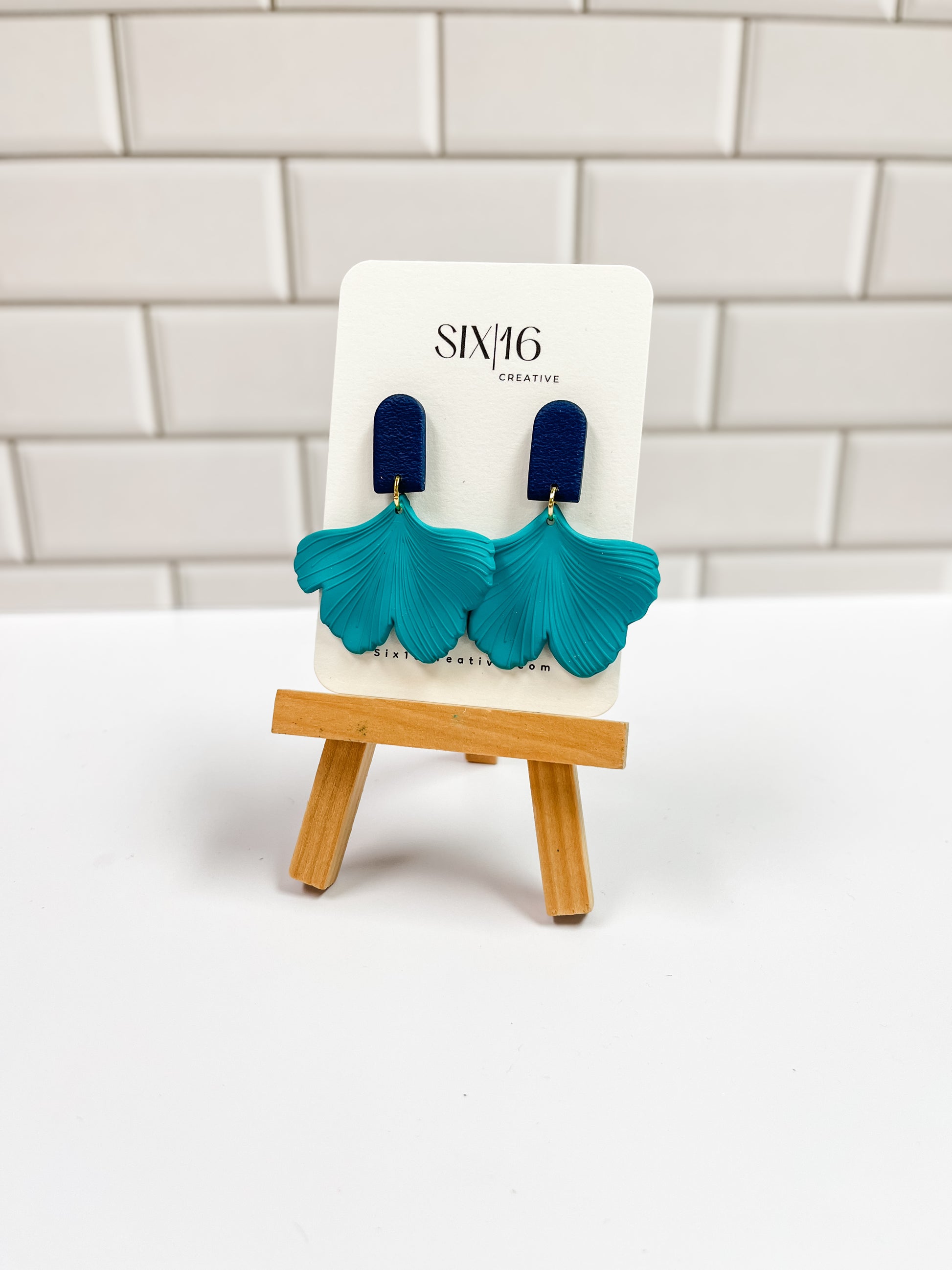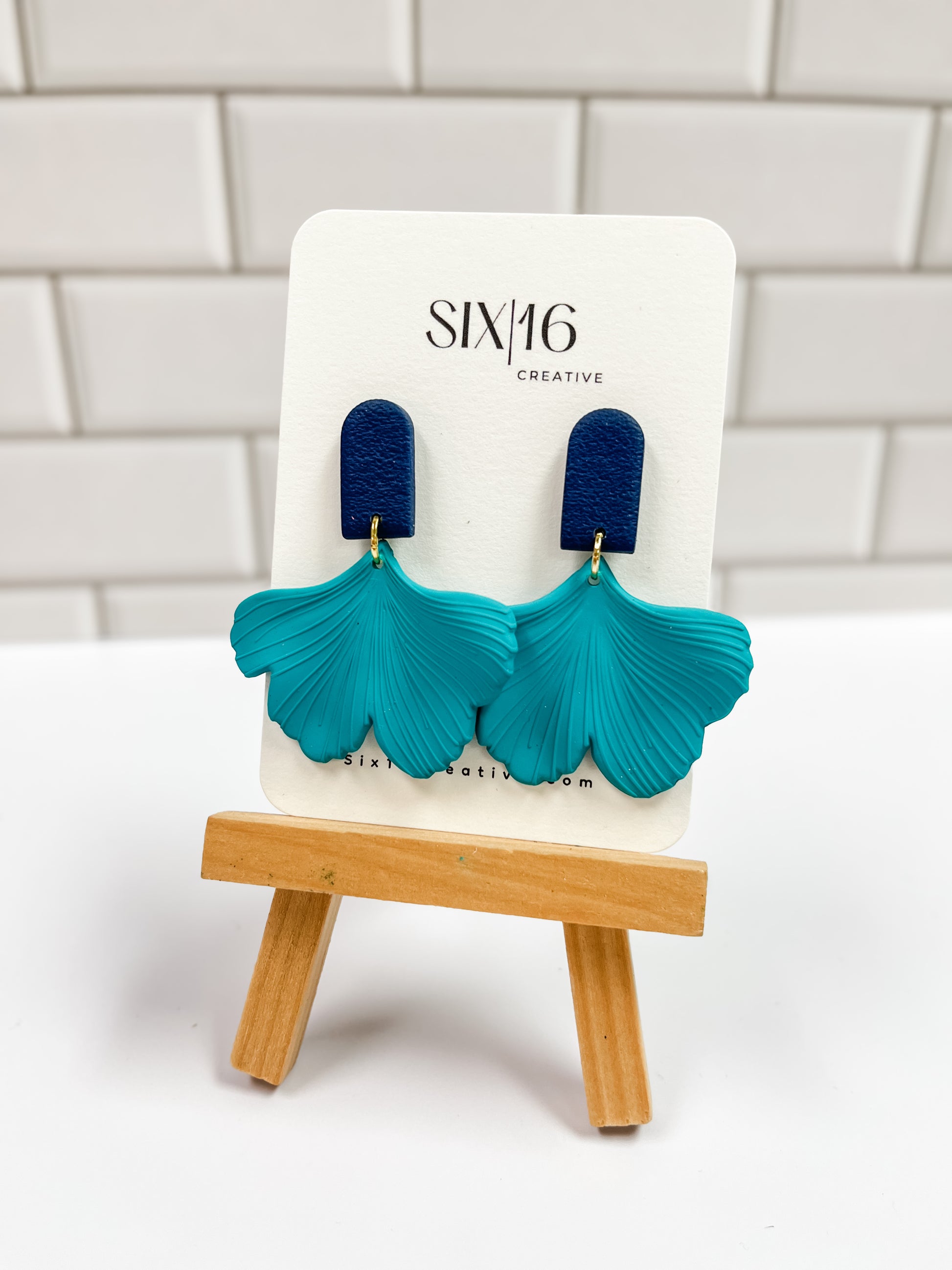 Teal Ginkgo Leaf Polymer Clay Earrings