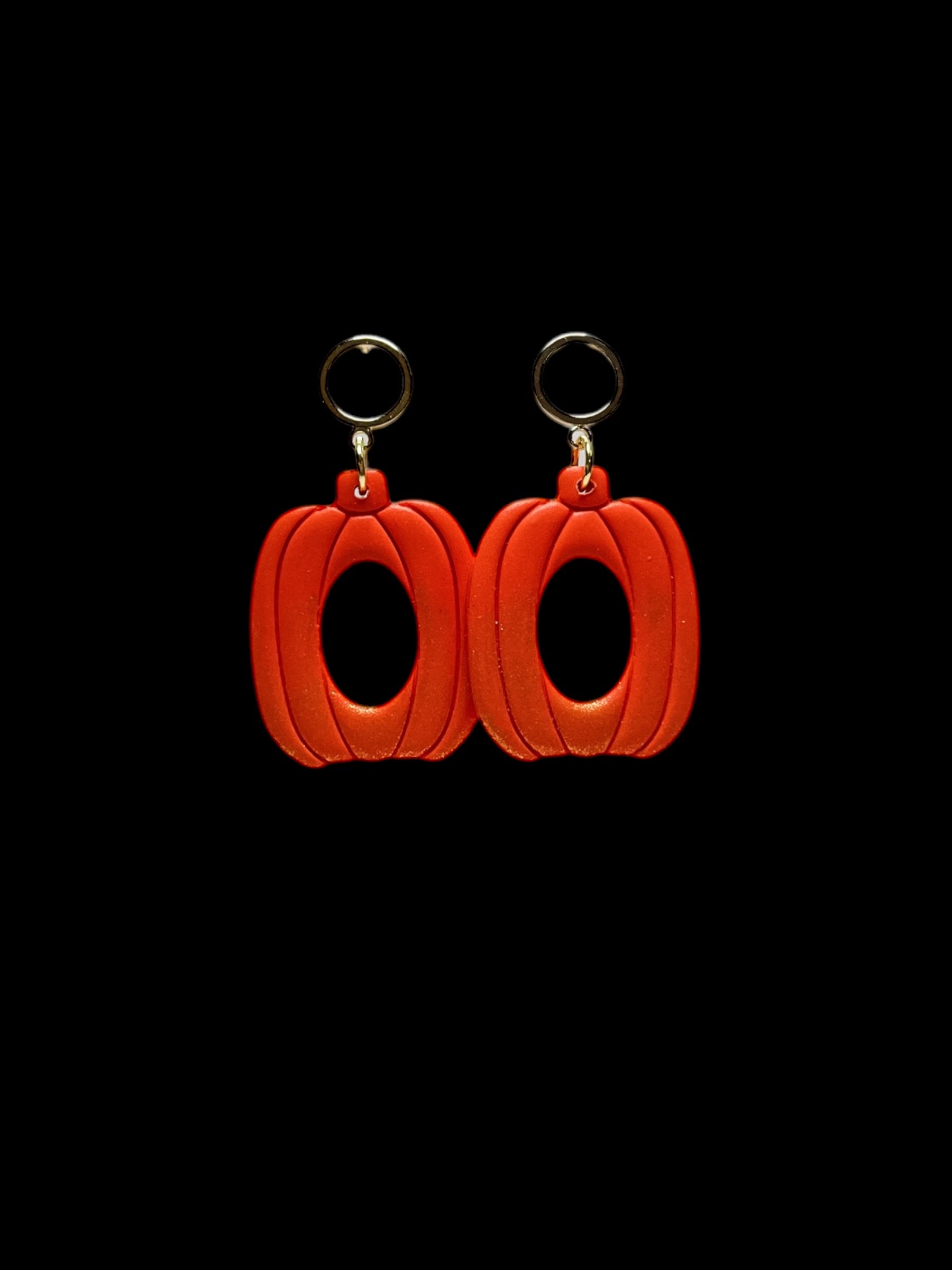 Orange Open Pumpkin Clay Earrings