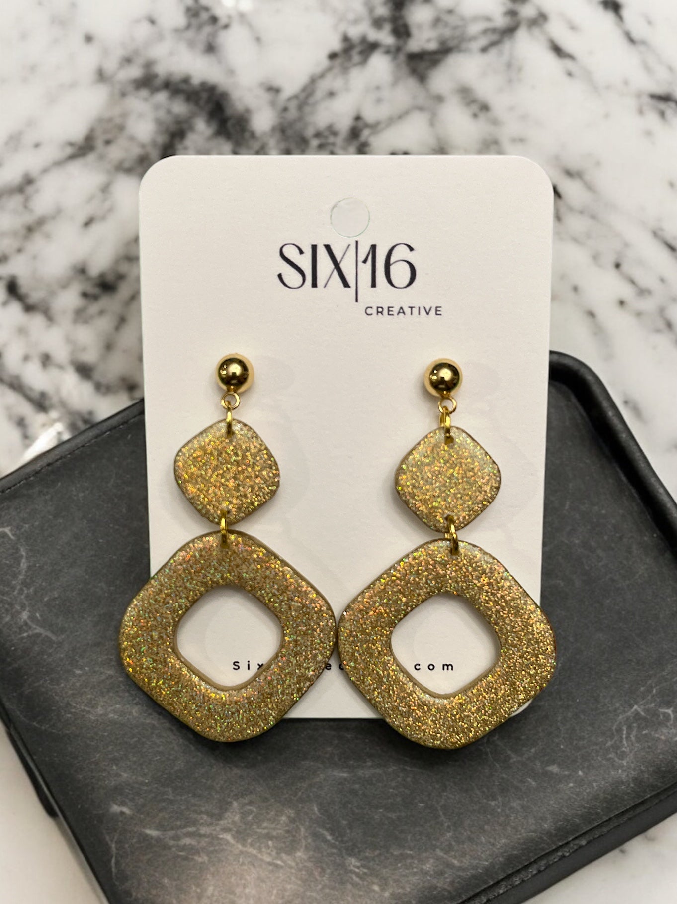Gold Glitter Polymer Clay Earrings