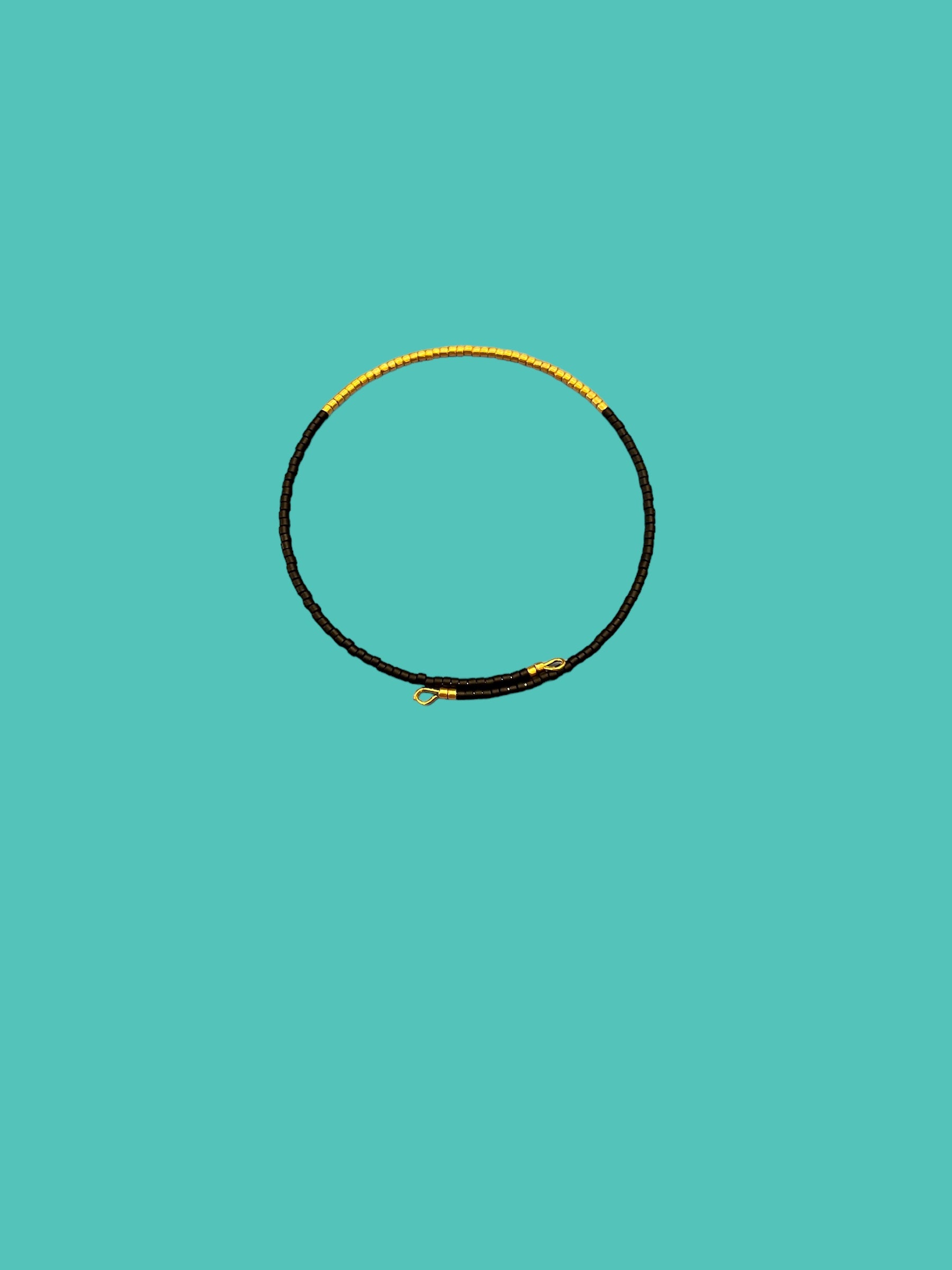 Matte black and gold beaded bracelet with a gold memory wire.