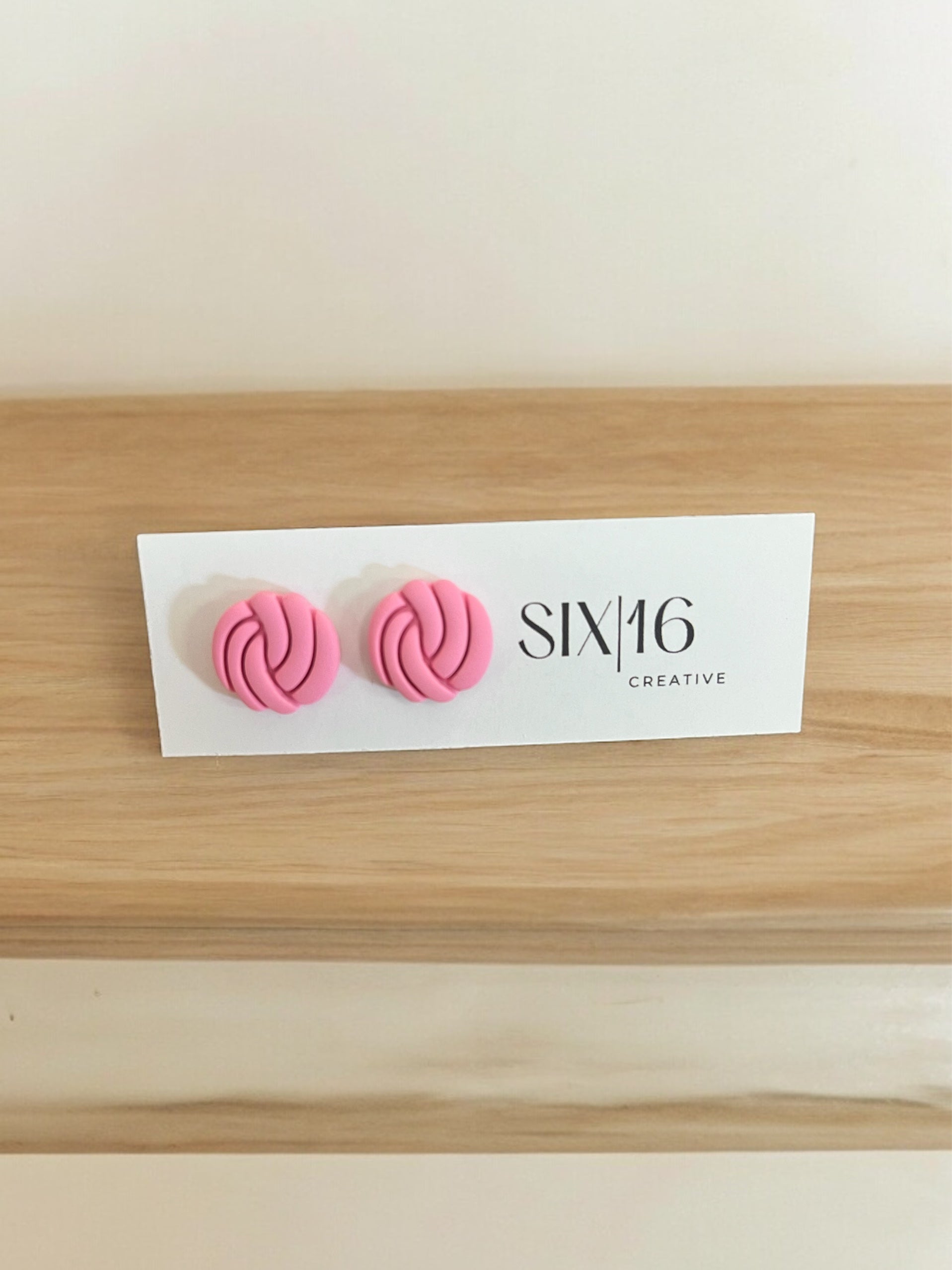 Pink circle stud on a stainless steel post or clip on with a stainless steel clip.